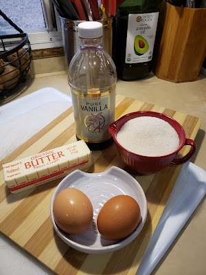 Cream together the butter, sugar, milk, vanilla, when blended well, add egg and beat until creamy.