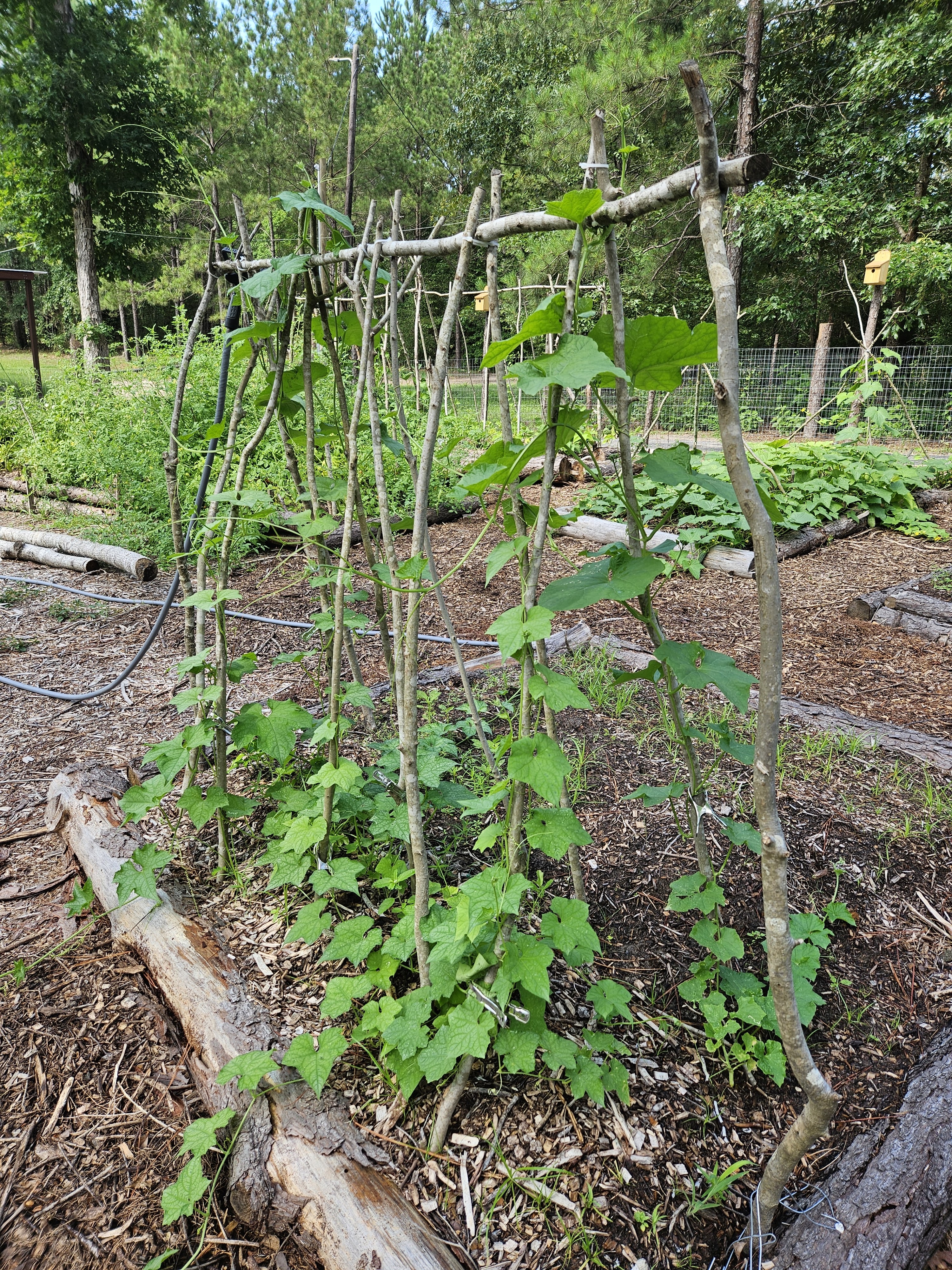 We are running a week behind, but we finally got trellis supports put up for the cucumbers. 05.09.2025